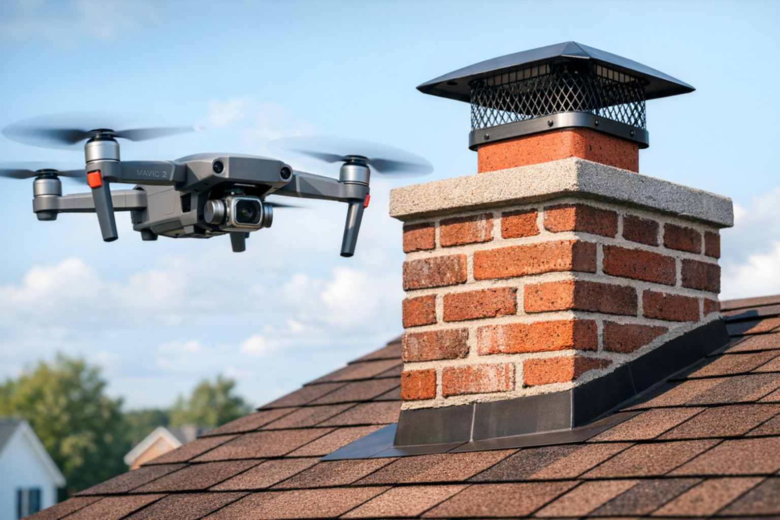 Identify cracks, loose bricks, crown damage, flashing issues, and chimney‑cap problems with accurate aerial imaging.
